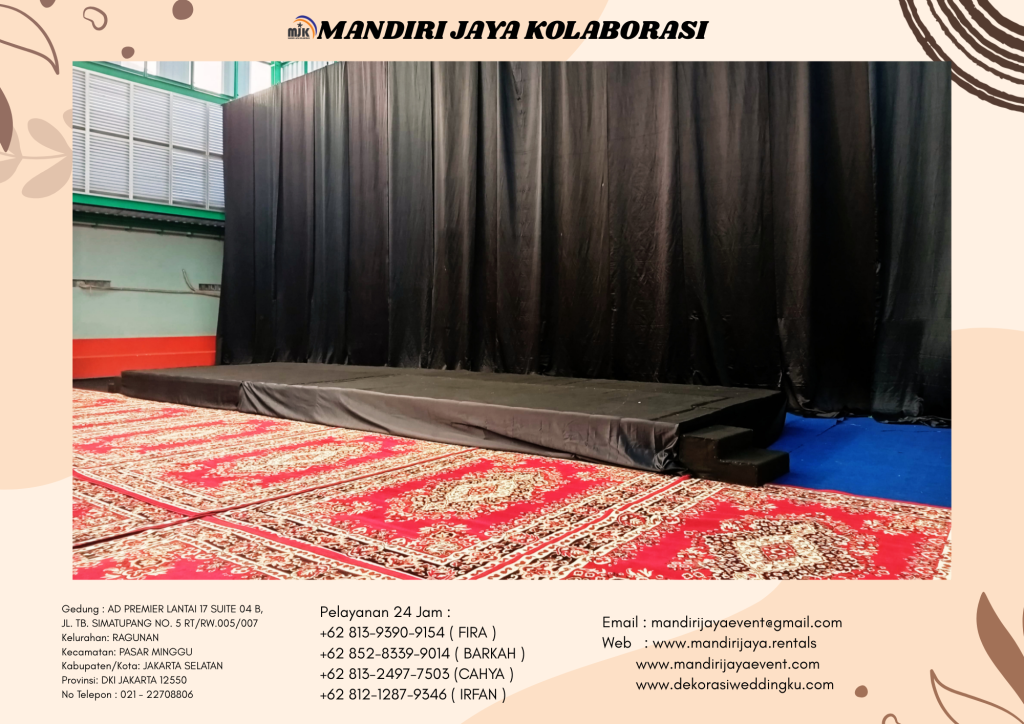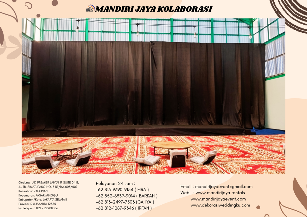 Hubungi kami sekarang untuk informasi detail paket sewa tirai hitam lotto area Depok, stok ketersediaan, dan promo menarik lainnya. Yukk, bikin momen berhargamu jadi lebih berkesan bersama kami.